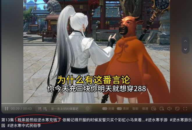 有玩家晒自己身边事:弟弟玩了两年《逆水寒》手游都是零氪,这次“国风民俗季”忍不住剁手怒充3块钱,不然实在对不住官方的良心和用心。就这样,还有不少人劝弟弟三思,因为零氪也能穿很好了。